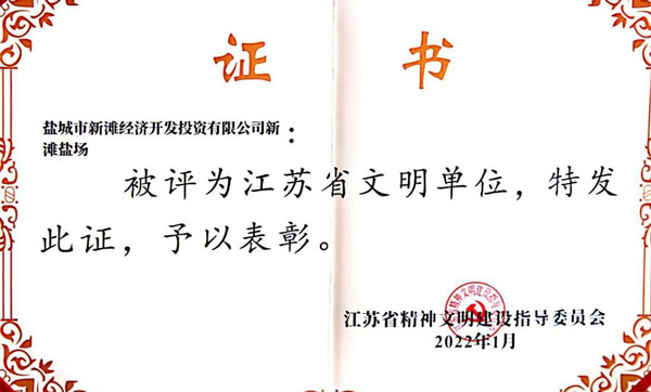 日前,江蘇省精神文明建設指導委員會發(fā)布《關于命名表彰2019-2021年度江蘇省文明村鎮(zhèn)、文明單位、文明校園(中小學)和江蘇省文明行業(yè)的決定》,新灘鹽場獲評“江蘇省文明單位”,這是繼2010年以來,該場第三次蟬聯該榮譽稱號。2022-05-20 -
