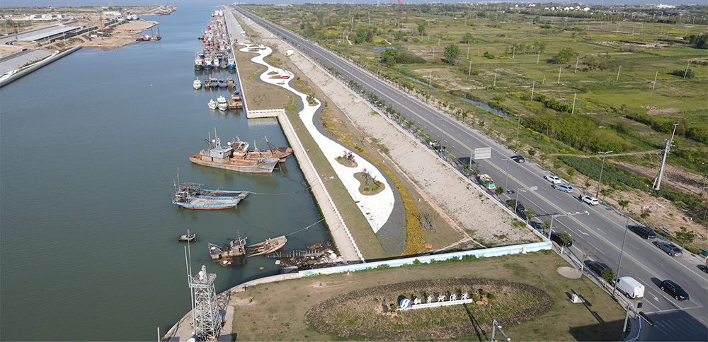 翻身河漁港升級改造項目按照國家一級漁港標準規(guī)劃建設(shè),改造后的陸域面積達88萬平方米,水域面積達30萬平方米,最寬處達220米。水工部分設(shè)有1942米海堤、1345米護岸、2210米碼頭泊位。其中北側(cè)護岸779米,碼頭泊位1242米,南側(cè)護岸566米,碼頭泊位968米,共設(shè)置泊位66個,南北兩側(cè)各33個,合計可并排應(yīng)急停靠約1000艘270馬力的漁船。南岸碼頭為休息待泊泊位,北岸為生產(chǎn)性泊位,具有卸魚、加油、加冰、加水等功能,總投資約3.4億元(不含征地拆遷費用)。